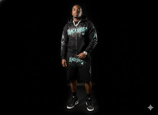 Black Sheep Hoodie and Short (Black and Turquoise)